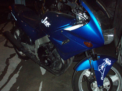 ちなみにタンクには白の反射ステッカー(上からキャンディ塗装してあるのでちょっとブルーに見えます^^)