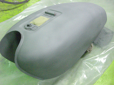 CB125JX の外装の塗装をすることになりました。写真は入庫時のタンク、、、わかりづらいかもしれませんが、かなり錆びてます。