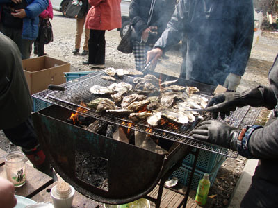 焼き牡蠣はそのままいただき、生牡蠣はレモン汁を掛けていただきました