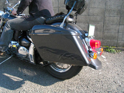 雪での大渋滞の中、関西からお越しくださったお客様がイントルーダーのサイドボックスを塗って欲しいとの依頼でした