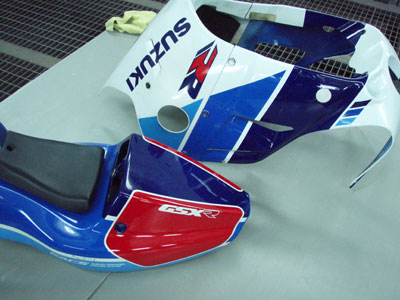 現在このカウルは下地処理され、ベース色を塗り、ライン引きまで作業が進みました。