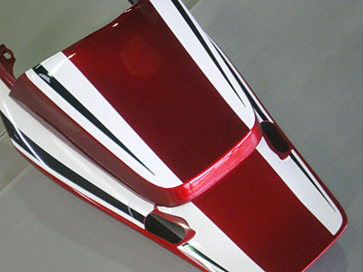 シングルシートカウルはシートカウルのラインを壊さないようにこんな感じのラインをお客様に考えていただいたものです。