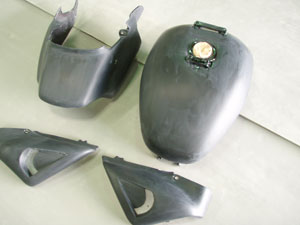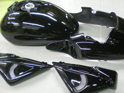入庫時から写真のように水研ぎ状態でしたが、その前にしてあった塗装がどんなものかわからなかったのと、凸凹を直す意味もあってもう一度JUNKで研ぎからやりました