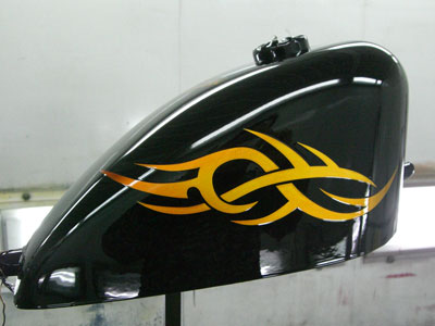 本当は黒一色で塗装の予定でしたが、トライバルを入れました。