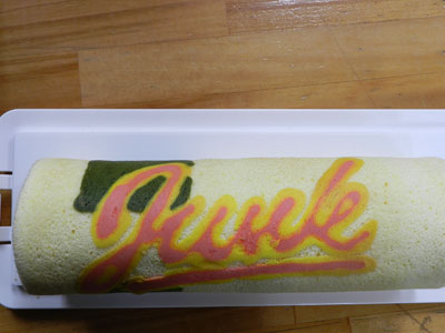 看板のデザインのロールケーキ。