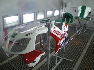 塗装に関して質問があるのですが、今回のVTR1000SP2 の塗装過程で「赤・緑・黒の塗り分けをしたパーツを水研ぎして」 とありますが、色を塗った後捨て吹きのクリヤーを吹いてから水研ぎでしょうか?それとも色を塗って乾燥後、直接カラー塗装面に水研ぎしておられるのでしょうか? またこの時のペーパーの番手は何番くらいのペーパーを当てておられるのでしょうか?