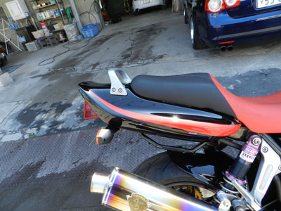 サイドカバーのみの塗装だったのですが、シルバーとガンメタを塗り分けて塗装しました。