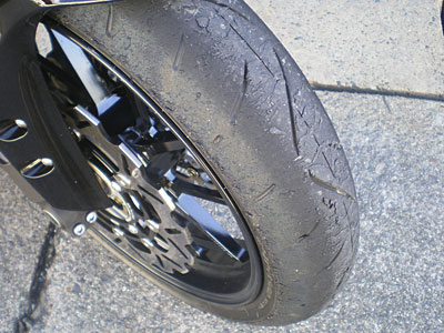 この写真ではわかりづらいですが、ホイールには青のリムラインが貼ってあります