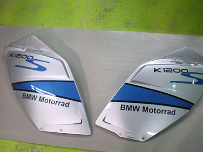 傷のない方のカウルにも『BMW Motorrad』のロゴを入れてオーバークリヤしました。