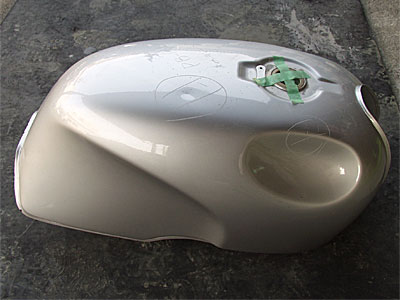ここ、大きな傷・凹みがあるんですけど、タンク買うと高いですから、補修しましょう!