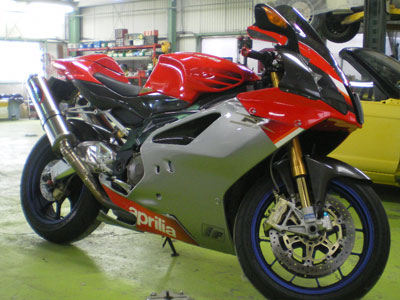 アプリリアの全塗装が完了し、関東からオーナーさんが引き取りにみえました