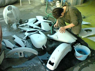 スポーツスター、アプリリア、CBR、GSX-Rのパーツを同時に水研ぎしているそうで、、、、こんな部品点数になっています