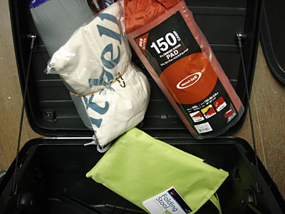 シュラフ・マット、、、その他にもちょこっと買いました。共用で使える道具は3人でシェアして持っていくことに