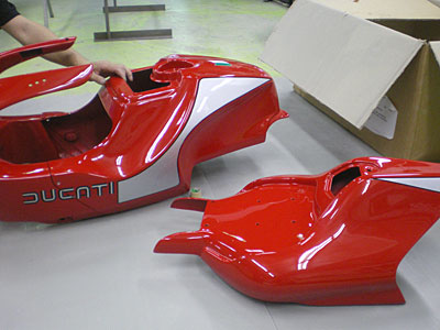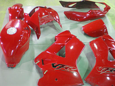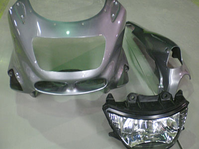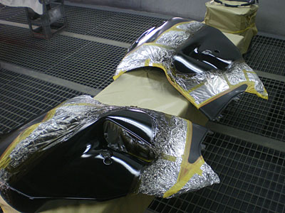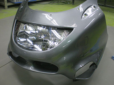 この時はサイドカウルの真ん中の塗り分けにメッキ調の塗装をしました。