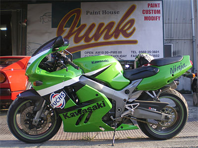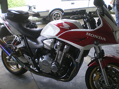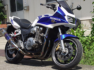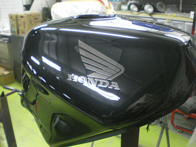 実はこれシルバーウイングなのですが、このバイクのオーナーさんも以前より青に塗装したいとお考えだったそうで、JUNKのHPの青白CBをご覧になって、自分と同じような人がいるんだなぁと思われたとか。