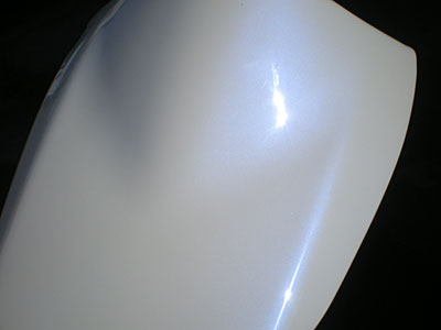 ベースのパールホワイトを活かして、青部分を塗装し、ステッカーを貼りオーバークリヤしました