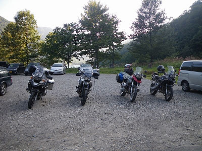 途中一旦止まった時の発進時にタイヤ滑ってバイクこかしました(想定内!)ラストを走っていたベテランライダーT氏に助けてもらいました。