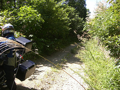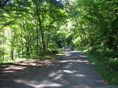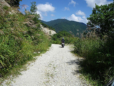 20キロほどの林道を走破したhiyoko(T氏撮影)ずっとスタンディングでした。立ったままアクセルを開けることも結構大変なのね、、、
