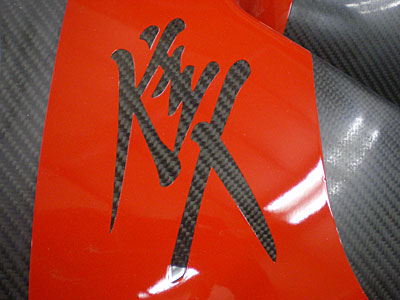 当初、タンクにはアプリリアのアルファベットのロゴを入れる予定でしたが、お客様の提案で左のようになりました。
