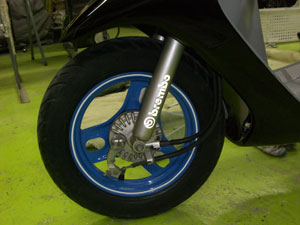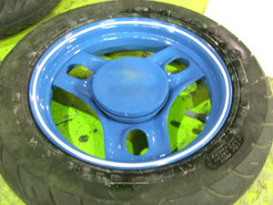 ホイールも塗装し、リムに白のラインテープも貼りました。