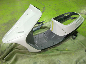 まだまだ元気に走るこの原付、でもちょっと外装が古くなってきていました。