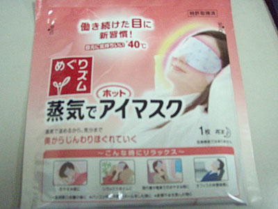 この蒸気でアイマスク、結構いいです、愛用したいなと思ってます