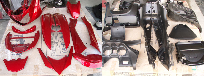 赤いパーツが外装、黒いのは内装パーツです。