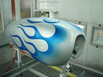 色はキャンディブルーがいいとのことでしたので、シルバーからのキャンディ塗装です。