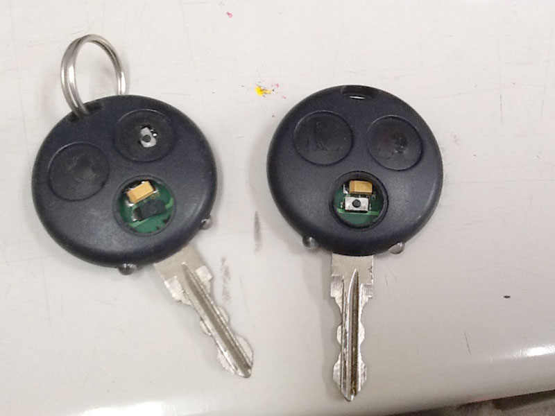 このリモコンキーで施錠と解錠をしなくてはいけませんが、すでにキーがこんな状態・・・
