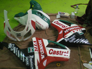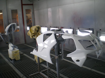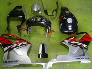 塗装に関して質問があるのですが、今回のVTR1000SP2 の塗装過程で「赤・緑・黒の塗り分けをしたパーツを水研ぎして」 とありますが、色を塗った後捨て吹きのクリヤーを吹いてから水研ぎでしょうか?それとも色を塗って乾燥後、直接カラー塗装面に水研ぎしておられるのでしょうか? またこの時のペーパーの番手は何番くらいのペーパーを当てておられるのでしょうか?