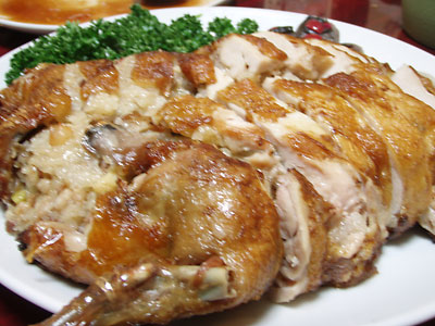 写真は『鳥の中にもち米を詰めたお料理』