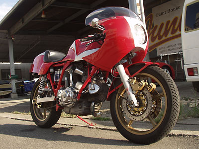 そして今回はミラー、サイドカバーからフロントフォークのアウターチューブまで、塗ってもらっています