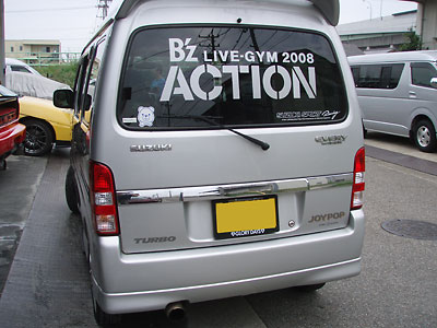 今回はB’zのライブのためにこのお車ではるばるお越しになったのですが、実はこのリヤのガラスのステッカーはJUNKで作ったものなのです。