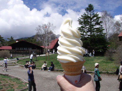 私は夕食の事を考えて白玉ぜんざいに♪これがまた『そばソフトクリーム』がのってて美味しかったョ