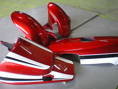 CB400SFの社外のカウルやフェンダーの塗装です。