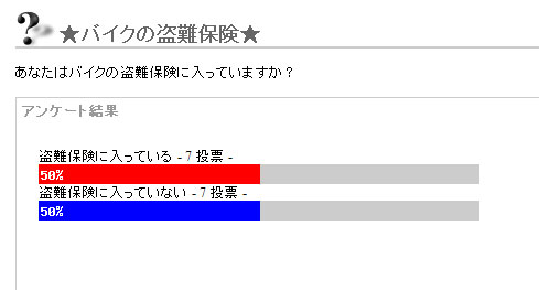 さて、先日の盗難保険のアンケート、どうもありがとうございました! 結果は以下のとおり