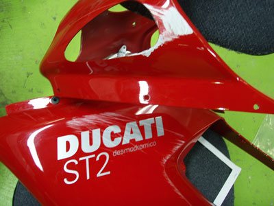 こうやって実際のカウルに合わせてステッカーのサイズを決め、塗り分けのライン等も決めていきます。